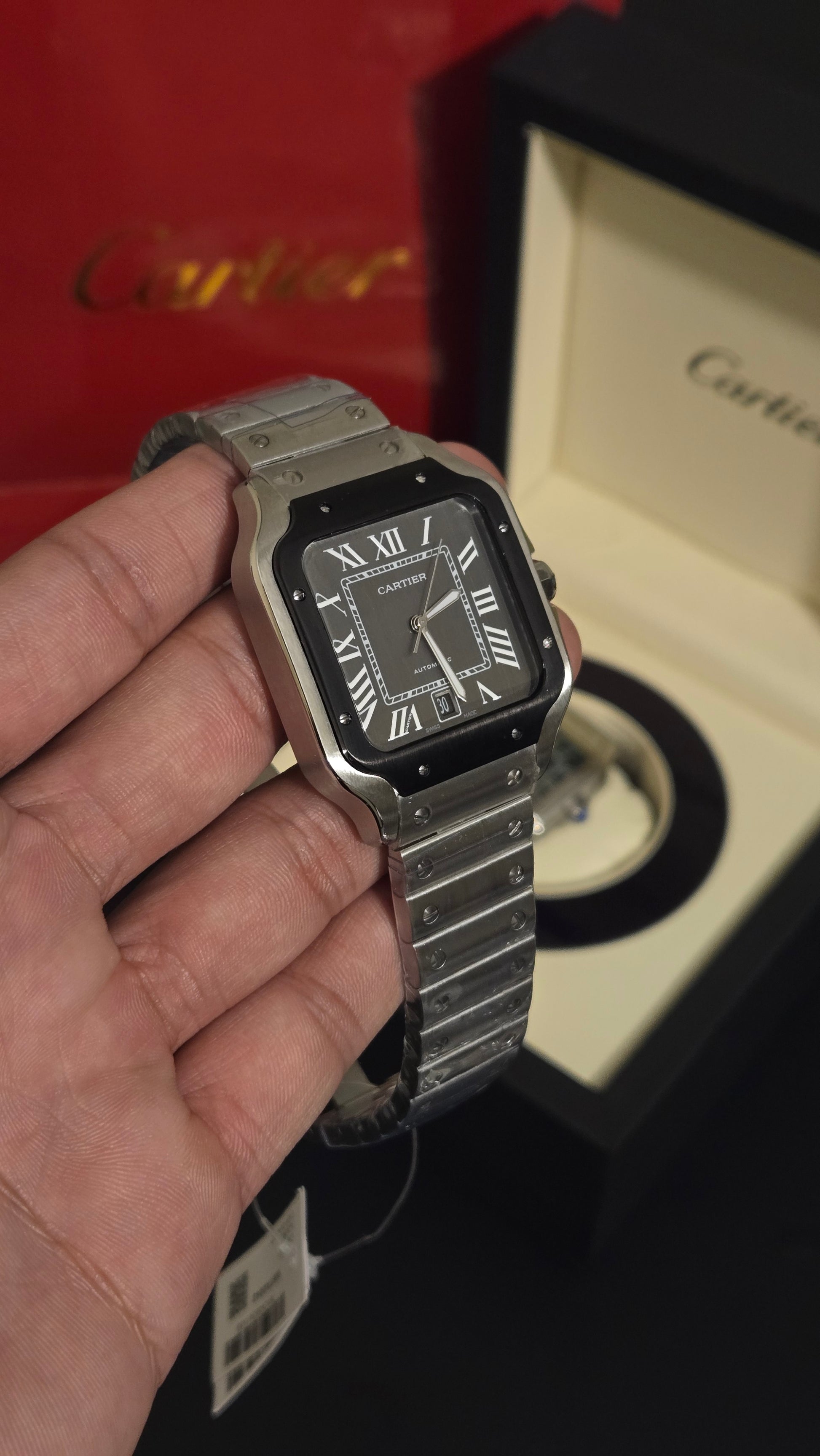 The Cartier Santos is a masterpiece for those who value heritage, elegance, and unmistakable style. Its iconic square case, exposed screws, and streamlined curves create a design that is both bold and effortlessly sophisticated. Paired with Cartier’s precise automatic movement, the Santos delivers reliability wrapped in timeless Parisian luxury. From its beautifully integrated bracelet to its polished surfaces and balanced dial, every detail reflects Cartier’s legacy of refined craftsmanship. Whether you’re building a distinguished collection or seeking a watch that radiates character and class, the Cartier Santos stands as a symbol of enduring prestige and elevated taste—perfect for those who appreciate true luxury with a modern edge.